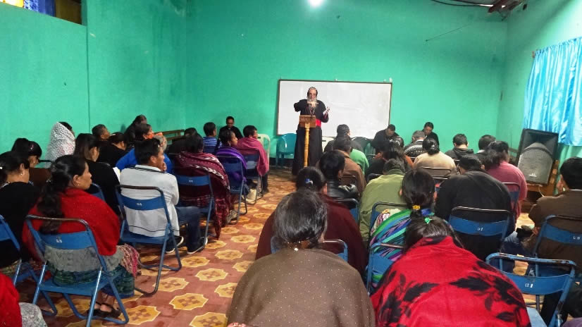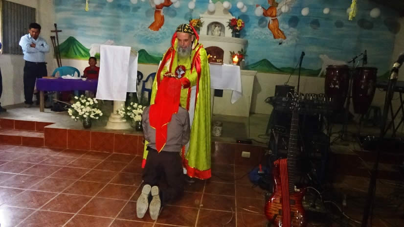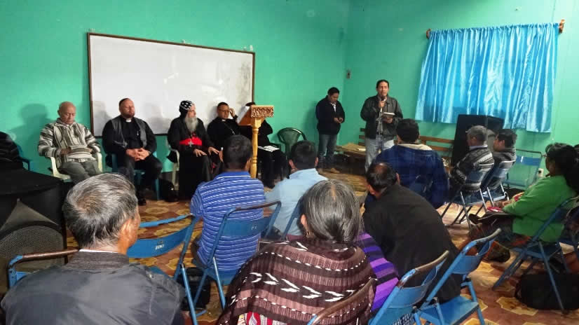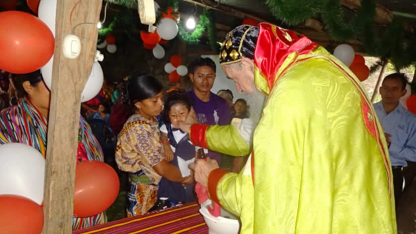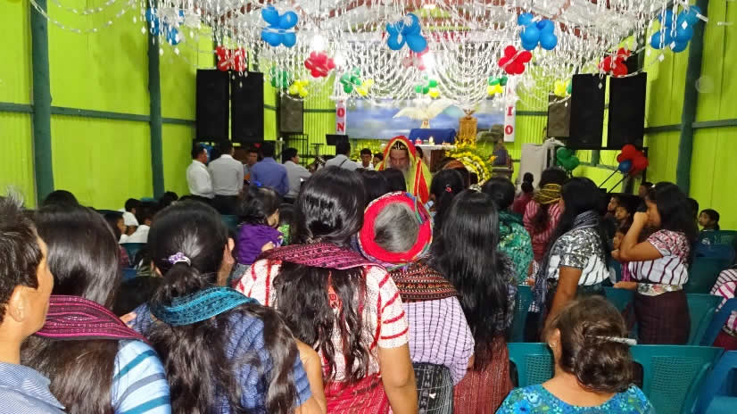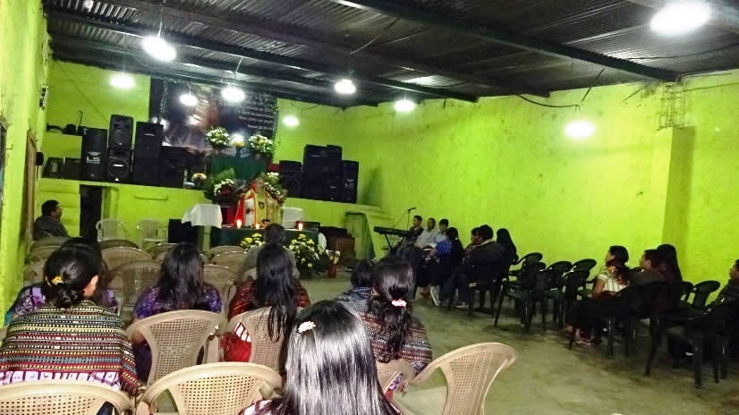 El primer por la noche, Mor Santiago Eduardo visitó la comunidad Nuevo Pentecostés, ubicada en el centro de la población de Santiago Atitlán, Sololá.