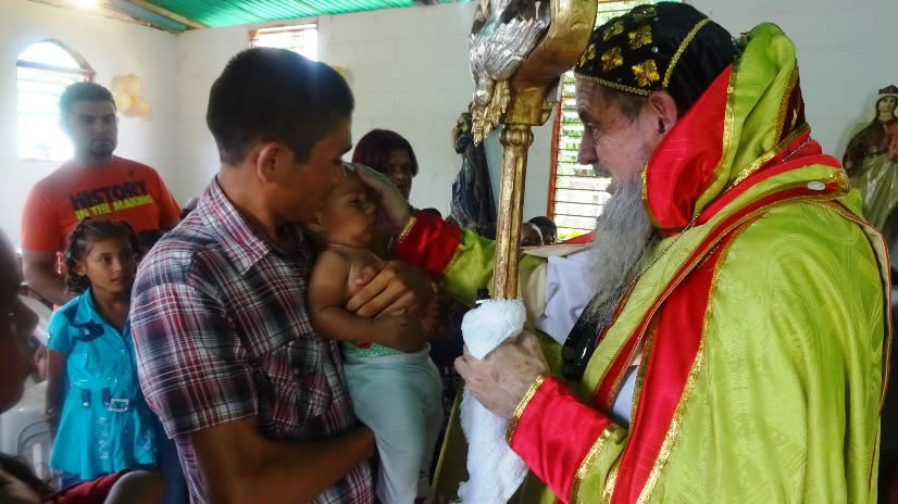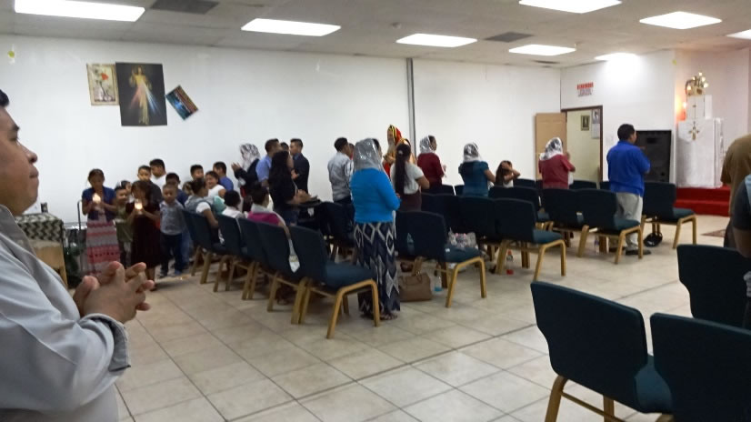 Al caer del día 8, Mor Santiago Eduardo llegó hasta la comunidad Nueva Vida, que se reúne en donde se encuentra la sede central de la Parroquia de San Miguel Arcángel.