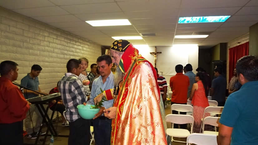 La visita del Arzobispo a la Parroquia de San Miguel Arcángel, terminó con la celebración de la Divina Liturgia, con los hermanos de la comunidad de Nuestra Señora de Guadalupe, Riverside, cuyas instalaciones acababan de ser bendecidas.