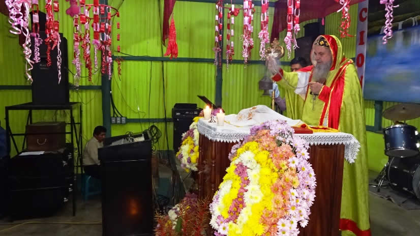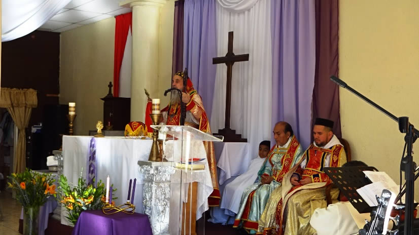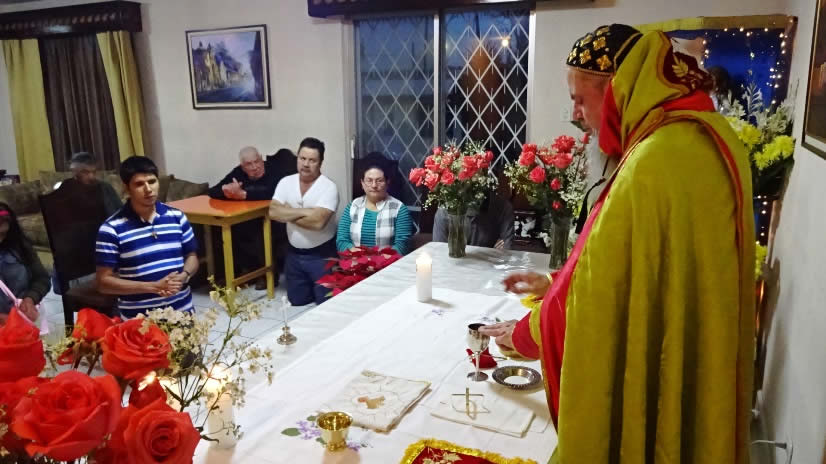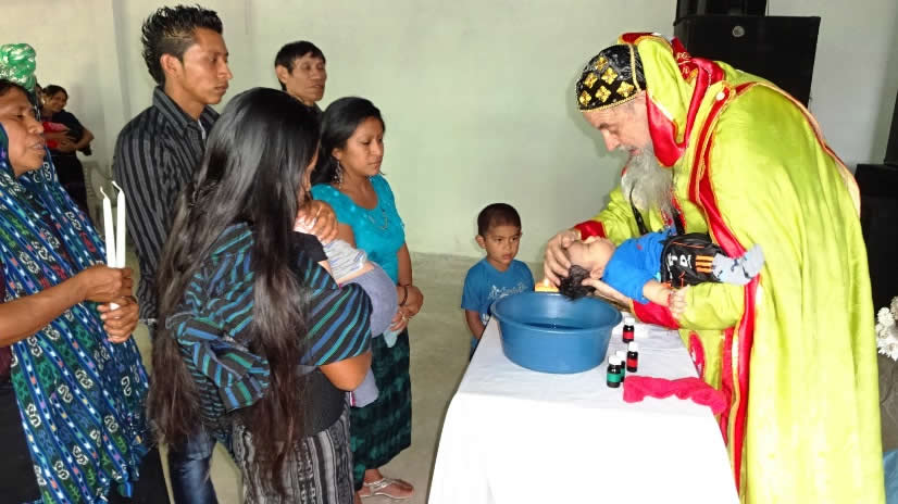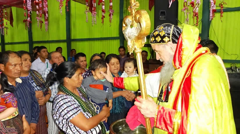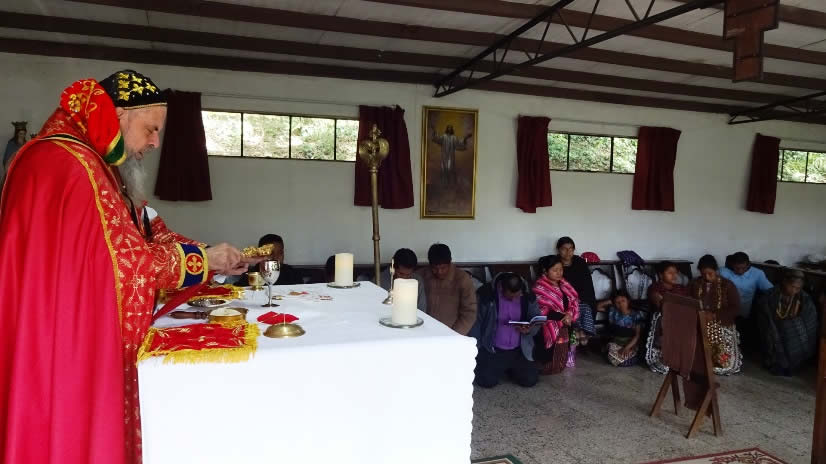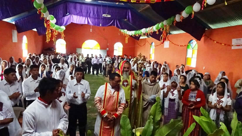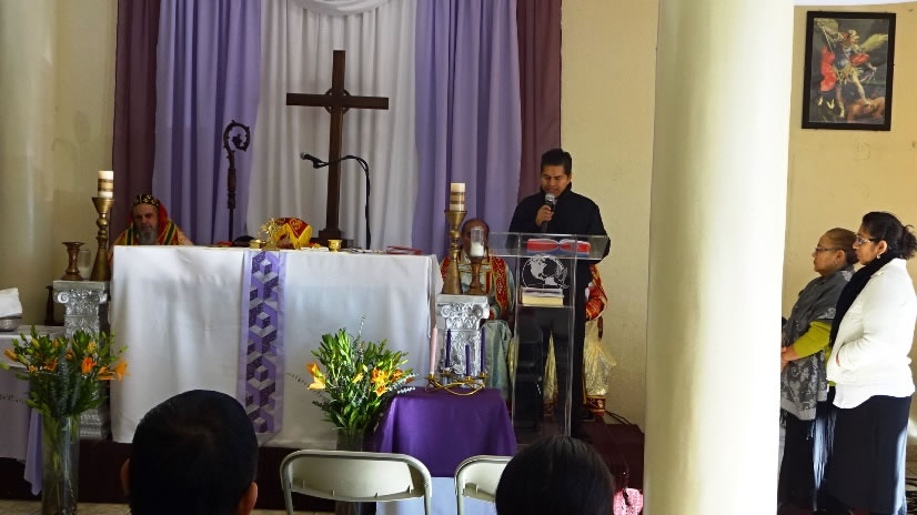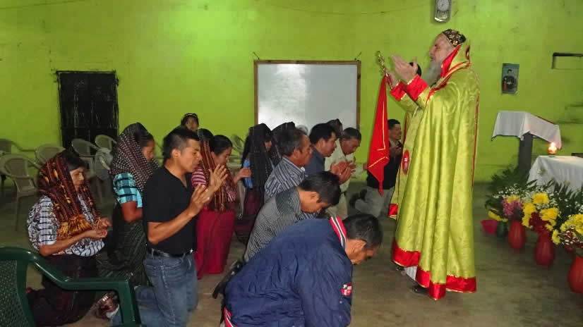El siete por la tarde, víspera de la celebración de la Concepción de la Virgen María, Mor Santiago Eduardo celebró la divina liturgia con un grupo de fieles de la Iglesia que viven en San Bartolomé Milpas Altas.