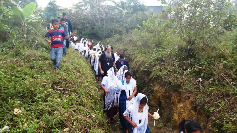 La primera lo hizo al terminar la divina liturgia en Quixabaj. La segunda al terminar la liturgia en Nueva Reforma.