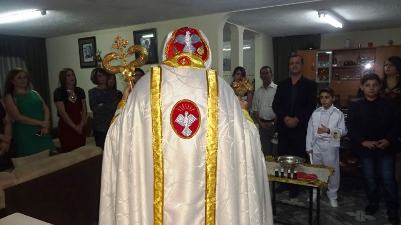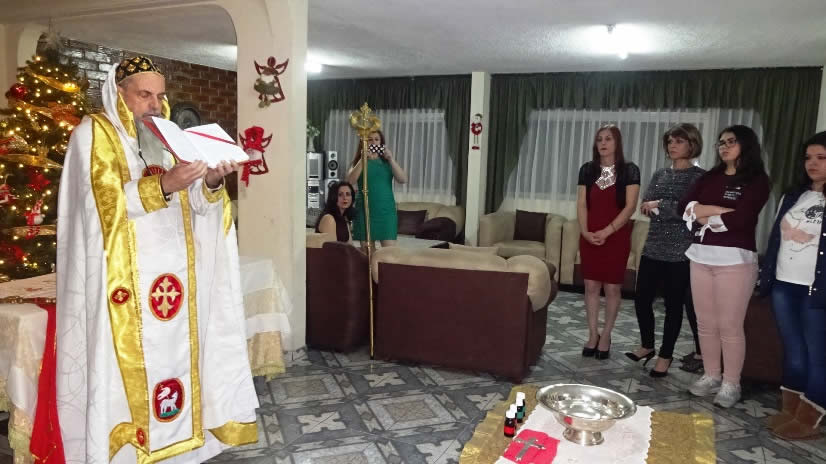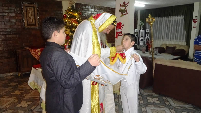 El sábado por la noche, Mor Santiago Eduardo llegó al hogar de una de las familias Batach, procedente de Siria, para celebrar la Divina Liturgia y administrar los sacramentos de la iniciación cristiana a Antonio, un niño de diez años.