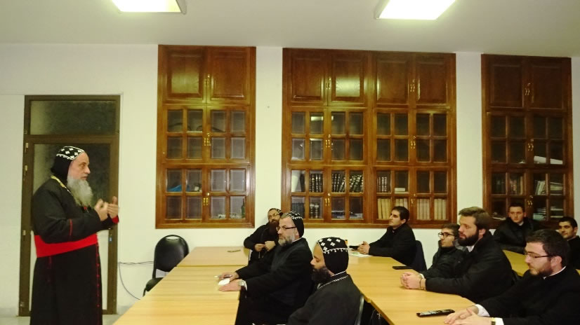 Durante dos horas, el arzobispo hizo la presentación ante el Rector, el Secretario para las Relaciones con la Iglesia Malankara, los monjes formadores del Seminario y los seminaristas, entre los que estaban los diáconos Juan Arcadio y Maxi Eliseo.