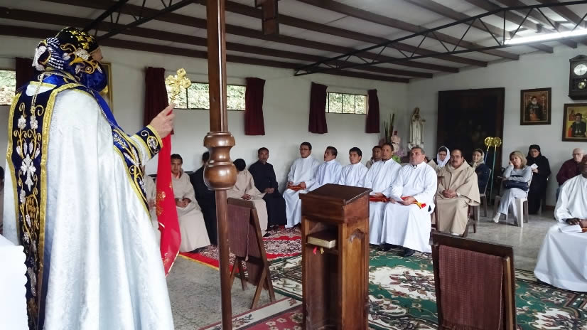 Al medio día Mor Santiago Eduardo presidió la Divina Liturgia en el Seminario Santa María del Nuevo Éxodo, en la que se impuso la ceniza, resultante de los ramos que fueron quemados el día de la Presentación del Señor o Candelaria y los cuales provenían de las ramas con las que se recordó el Domingo de Ramos del año pasado 2016, la entrada triunfal de Jesucristo a Jerusalén.