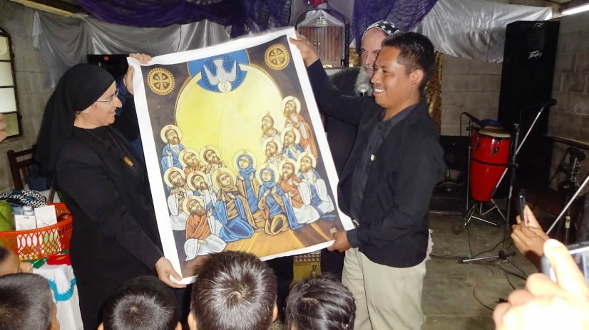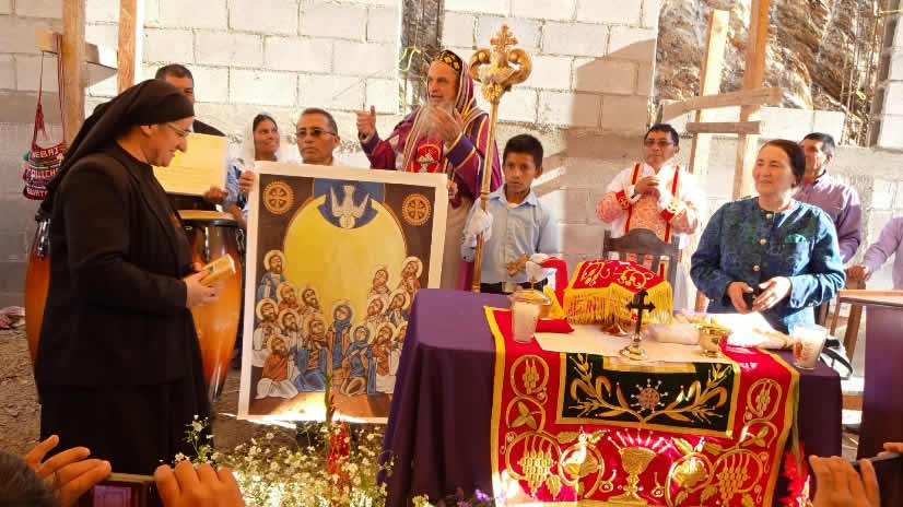 A través de la hermana Hatune, se ha recibido una donación para apoyar la construcción del templo parroquial que se ha iniciado. Ella hizo entrega de una placa conmemorativa que se colocará al terminar la obra, así como de un icono de Pentecostés, para colocar dentro del nuevo templo en construcción.