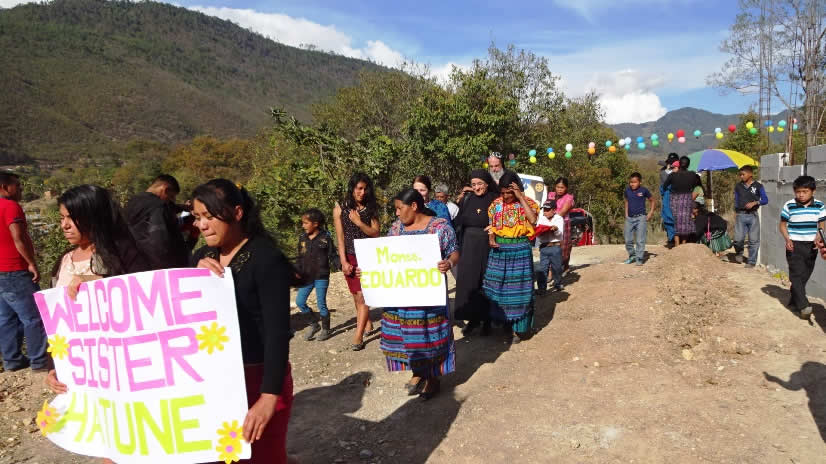 El sábado once por la tarde, el arzobispo acompañado por las hermanas Hatune Dogan y Lucía, visitó la comunidad de Los Guates en San Juan sacatepéquez, Guatemala.