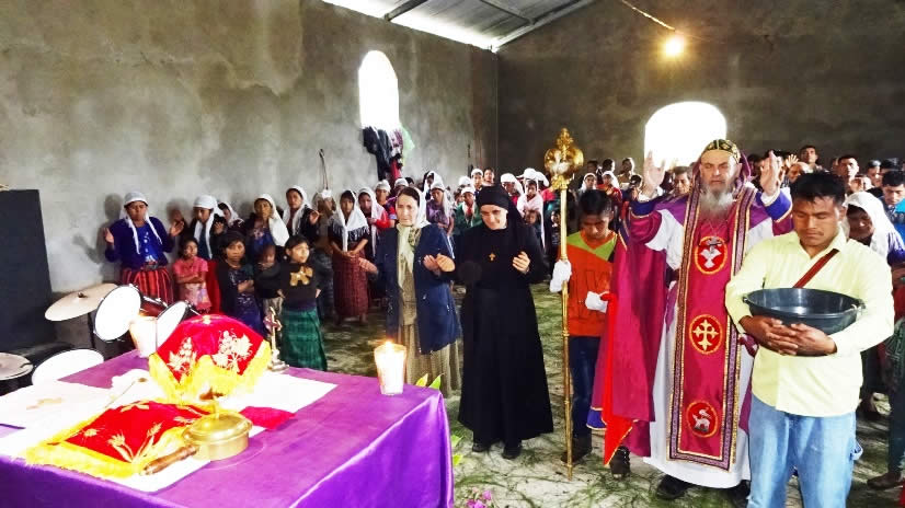 El viernes diez por la noche, el arzobispo visitó la comunidad de Purah, en el área vecina del pueblo de San Juan Chamelco, para presidir la celebración de la Divina Liturgia y para bendecir los trabajos que se están realizando para la terminación del templo de la comunidad.