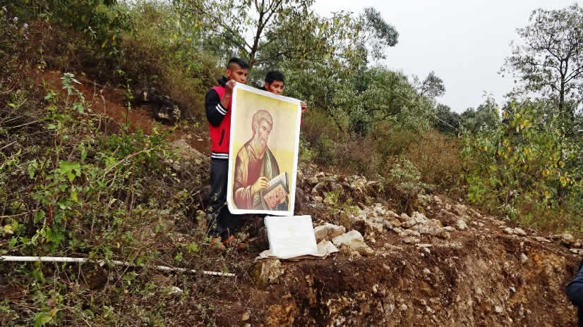 Después de entregar la placa conmemorativa y un icono de San Mateo Apóstol, se hizo la bendición de los trabajos y se pidió por los donantes, así como por quienes con su aporte de diversa índole, harán posible la construcción del templo de la comunidad.