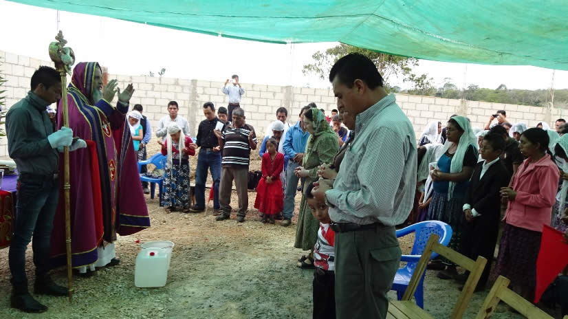 El miércoles 15 por la mañana, después de hacer una breve caminata para llegar hasta el lugar en donde está ubicado el templo de la comunidad, el arzobispo, acompañado del padre José Alfredo y de las hermanas Hatune y Lucía, así como del diácono José Bailiner, llegaron hasta el nuevo templo de la comunidad.