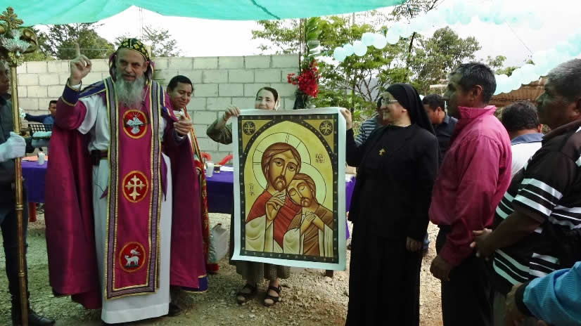 La comunidad local está recibiendo una ayuda para la construcción de su templo, por lo que la hermana Hatune hizo entrega de la placa conmemorativa y de un icono de Pentecostés.