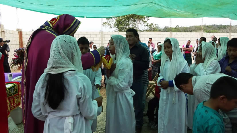 Con ocasión de la visita del arzobispo, se administraron los sacramentos de la iniciación cristiana a dos niñas: Marcela Dominga y Kimberly. La segunda es hija del líder de la comunidad, el hermano Andrés.