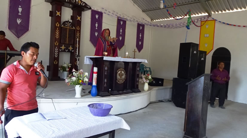 14: DIVINA LITURGIA EN EL CENTRO PASTORAL SAN JUAN EVANGELISTA, AGUA TINTA, MARGARITAS, CHIAPAS, MÉXICO. |