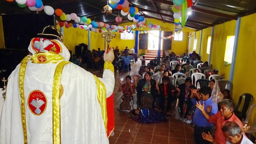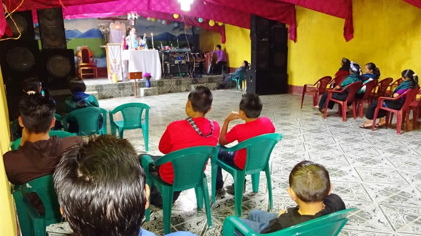 El domingo cuatro por la tarde, el arzobispo llegó a visitar la comunidad de Los Guates, de San Juan Sacatepéquez, la cual se sigue reuniendo en su antiguo espacio, mientras logra avanzar un poco más en la construcción de su templo.