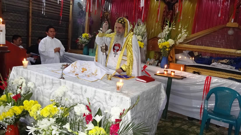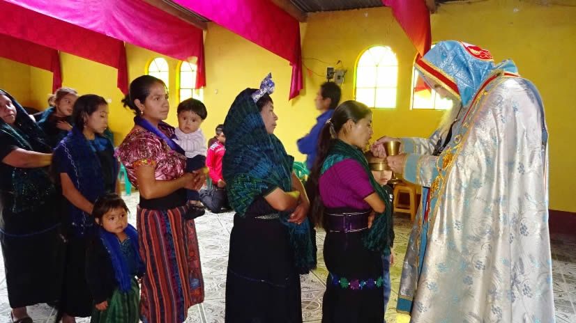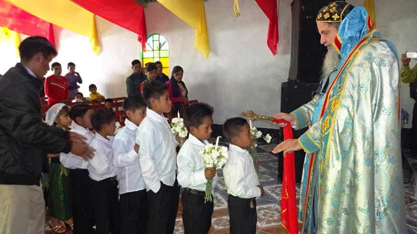 La actividad pastoral del arzobispo concluyó en la comunidad de las Palmas, de San Juan Sacatepéquez, en donde presidió la celebración de la Divina Liturgia.