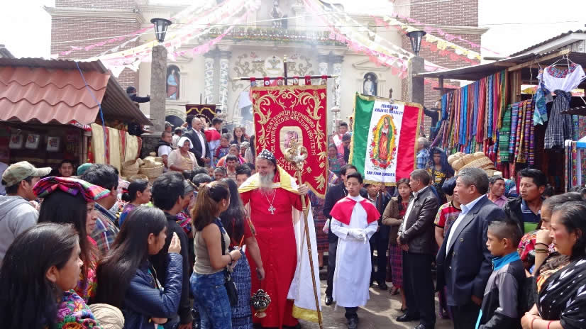Al terminar la celebración de la Liturgia, comenzó una procesión por buena parte del pueblo de San Juan Comalapa, Chimaltenango, con participación de miles de fieles.