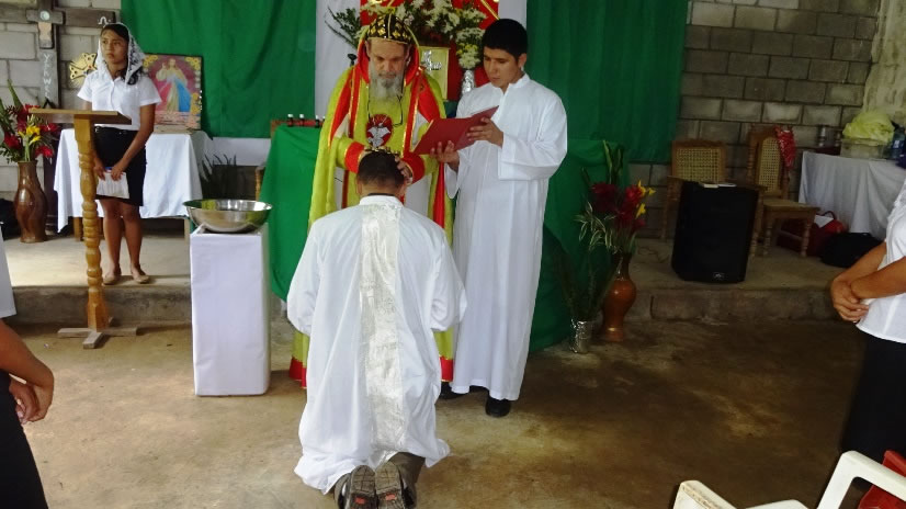 El domingo 25, después de medio día, en el templo en construcción de la comunidad de Guaymando, Ahuachapán, El Salvador, el arzobispo celebró la ordenación como acólito del hermano Selvin Escobar.