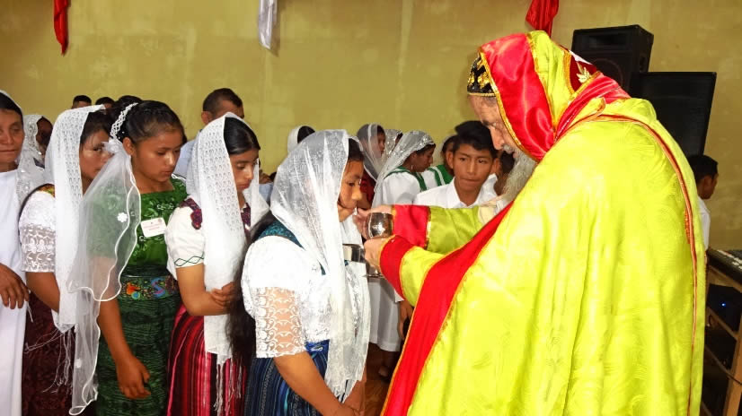El sábado 29 por la tarde, el arzobispo llegó hasta la comunidad de Manantial Carretera, acompañado por el Padre Hugo Patzán, para presidir la celebración de la Divina Liturgia y para administrar la confirmación y el envío misionero a numerosos hermanos, que habían sido preparados.