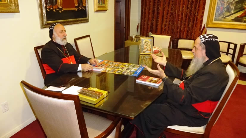El sábado hacia el final de la mañana, el arzobispo llegó hasta la Catedral de San Efrén en Burbank, para tener un encuentro con Su Eminencia Mor Clemis Eugenio Kaplan, arzobispo del oeste de los Estados Unidos.