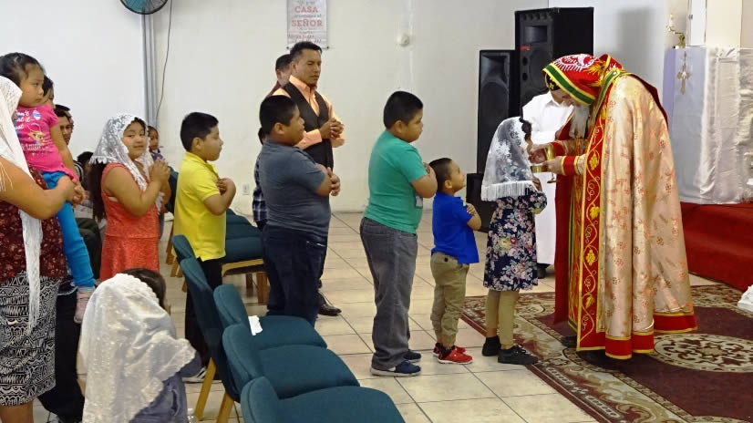 El sábado por la noche, el arzobispo llegó hasta la comunidad de Adoradores de Cristo Rey, para celebrar la Divina Liturgia y administrar los sacramentos de la iniciación cristiana a un niño.