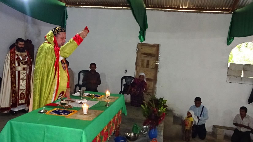 Los hermanos le recibieron con gran alegría y luego le acompañaron hasta la cima de un cerro en donde está construido el templo provisional y esperan iniciar pronto la construcción del templo definitivo en el mismo lugar.