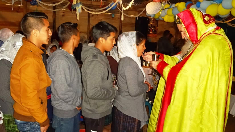Al final de la mañana del día 6, se celebró la Divina Liturgia con líderes y algunos feligreses de la comunidad de Chel, Chajul, en el templo provisional.