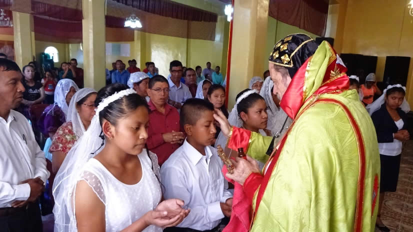 El lunes 6, Mor Santiago Eduardo, acompañado por el Padre Paulino Bizarro, llegó hasta la sede parroquial provisional de Chel, Chajul, para la celebración del decanato del Norte de Chajul.