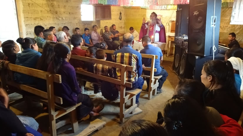 Hacia el final de la mañana, el arzobispo presidió la celebración de la Misa con los hermanos de la nueva comunidad de la Nueva Esperanza y los de la comunidad central de Tziminas en el templo de Tziminas, de San Sebastián Huehuetenango.