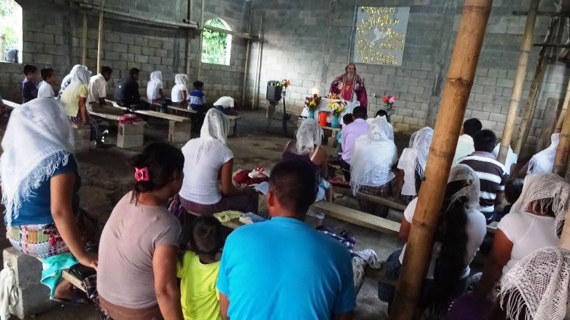 Loss hermanos de esta comunidad, a pesar de ser muy pobres, han logrado construir un hermoso templo, del que han terminado las paredes y el techo.