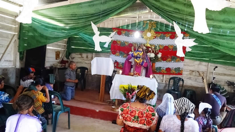 El sábado, después del medio día, el arzobispo presidió la celebración en el templo de Quiajolá, San Sebastián Huehuetenango, dedicada especialmente a las servidoras de la comunidad local.