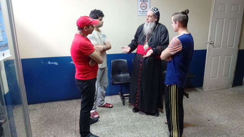 El miércoles 6 de diciembre, Mor Santiago Eduardo llegó hasta un albergue de la Dirección General de Migración, para visitar a tres hermanos sirios, que están buscando refugio en Guatemala.