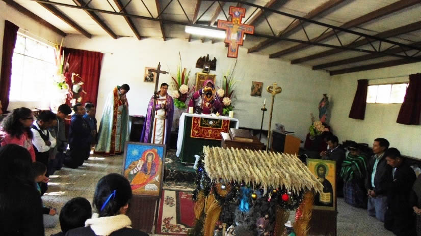 El trece, después del mediodía, el arzobispo presidió la celebración de la Divina Liturgia en la sede provisional de la parroquia de Santa Eulalia, Huehuetenango.