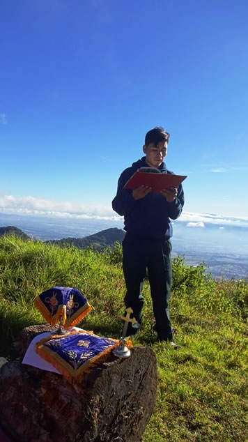 Habiendo salido de madrugada, desde la Hacienda Carmona, acompañado por el diácono José Bailiner y el hermano Cristián Rodrigo, después de llegar a la cima, se oró, pidiendo al Señor la bendición por toda la Arquidiócesis de Centro América y por toda la Iglesia.
