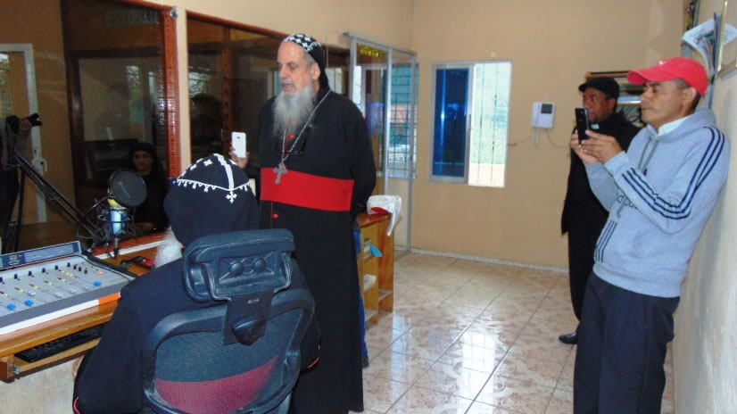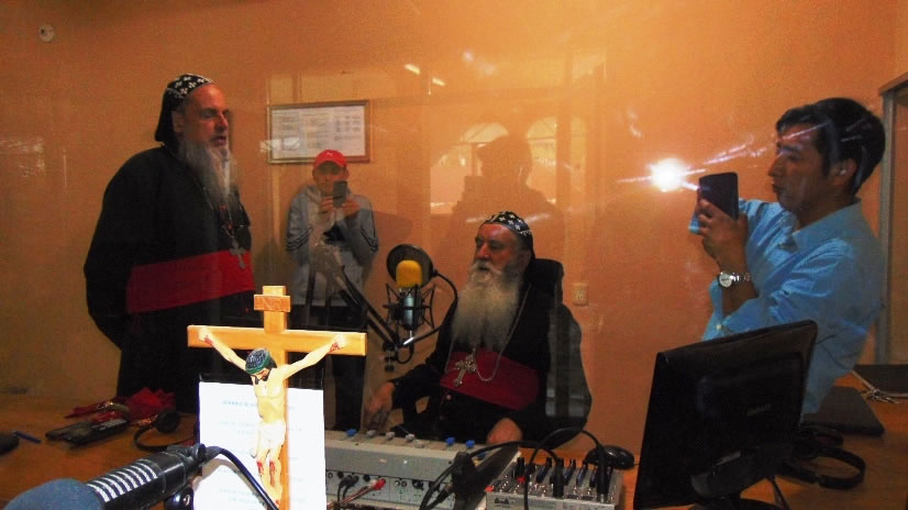 Después de visitar la iglesia y de entregar un libro de los Evangelios en arameo, el arzobispo Julius y la hermana Hatune, llegaron hasta la cabina de radio Nueva Vida, desde donde enviaron un breve saludo a todos los radio oyentes.