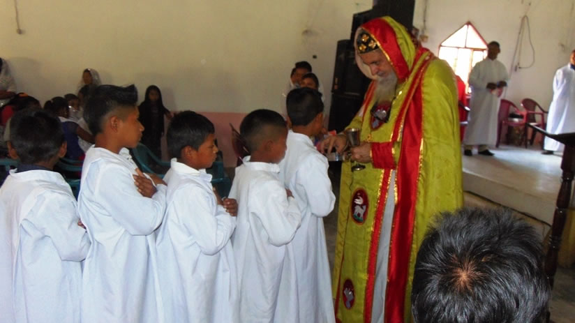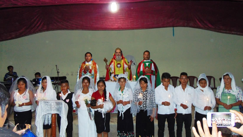 El domingo por la tarde, Mor Santiago Eduardo llegó hasta la comunidad de Chanquejelbé, acompañado de los padres José Alfredo y Francisco.