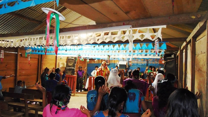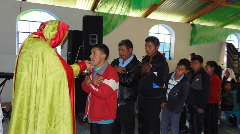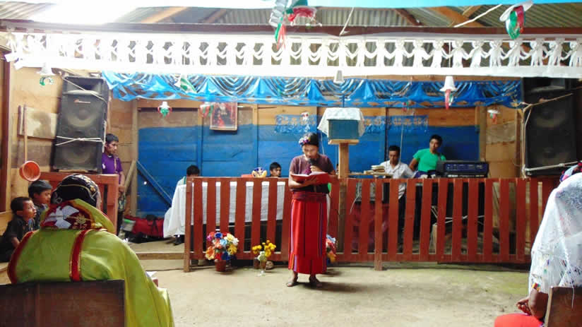 Esta comunidad se caracteriza por su organización y constante crecimiento. En esta ocasión, sin embargo, sólo se encontraba presente menos de la mitad de los fieles. La razón es porque, en este tiempo del año, los hermanos bajan al área cálida, sobre todo a la Democracia, para hacer sus cultivos de milps.