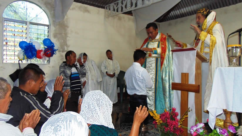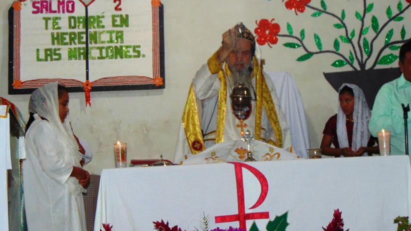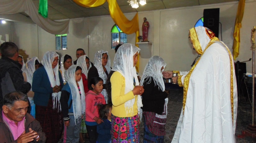 El sábado cinco, por la tarde, Mor Santiago Eduardo presidió la celebración de la divina liturgia en la sede parroquial de la Epifanía, Nucá, Santa Cruz Barillas.
