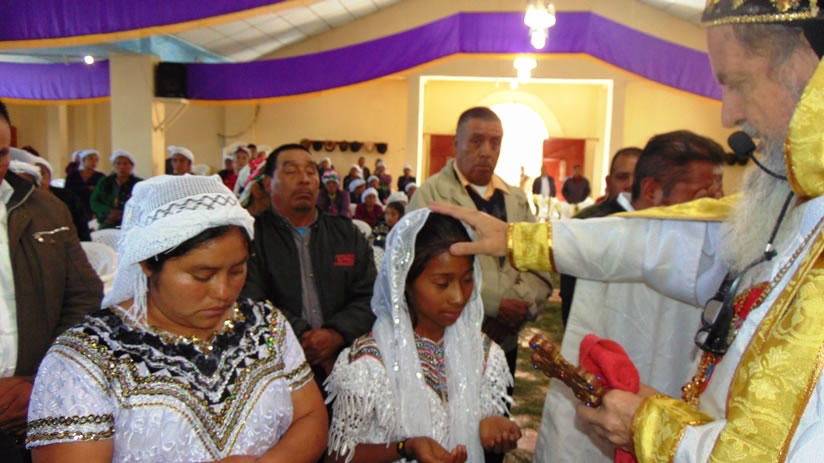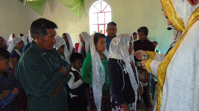 El sábado cinco, al final de la mañana, el arzobispo presidió la celebración de la Divina Liturgia en el templo central de San Mateo Ixtatán.