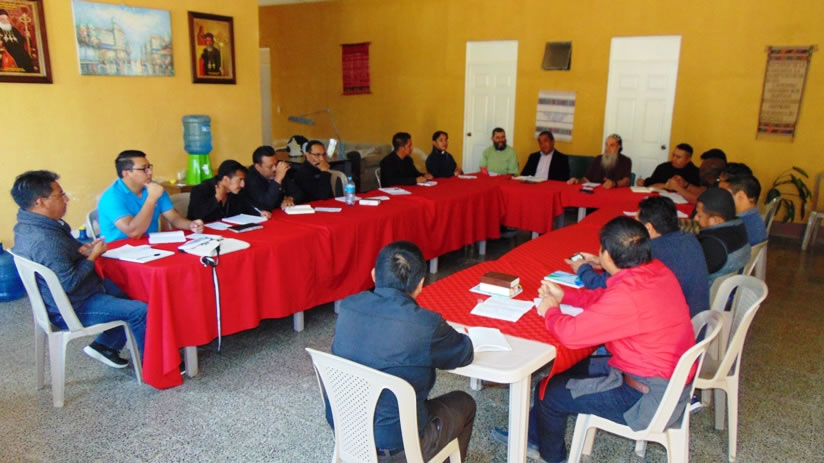 El martes cinco, por la mañana, en el marco de la reunión de presbiterio de la Vicaría de Huehuetenango, la actividad comenzó con la oración, para pedir la iluminación al Señor para la jornada que iniciaba.