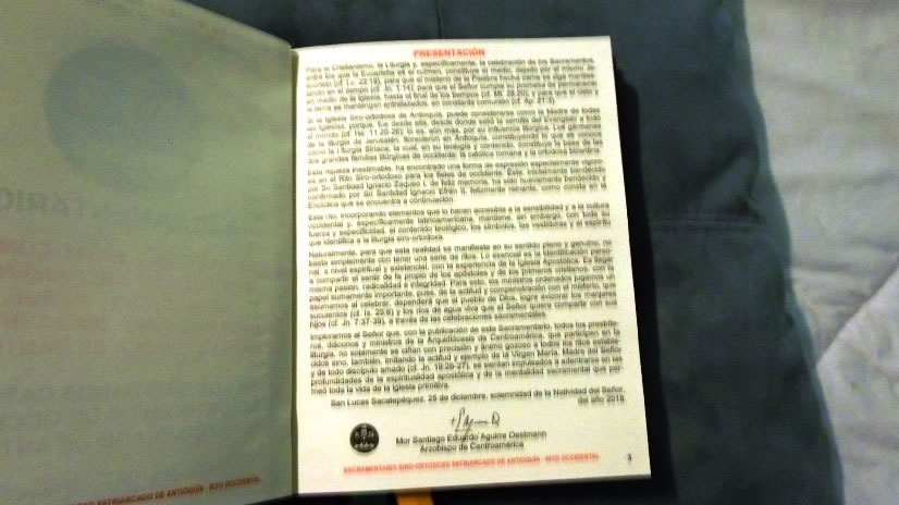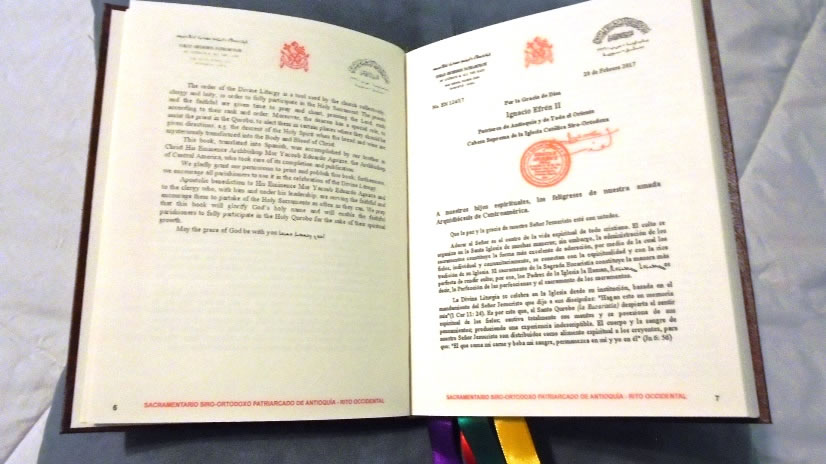 El mismo, con la bendición de Su Santidad el Patriarca Ignacio Efrén II, había sido consignado por el impresor al arzobispo pocos días antes. Representa el resultado de quince años de peregrinación y de redescubrimiento de la Liturgia Apostólica, en su sentido y espíritu original.