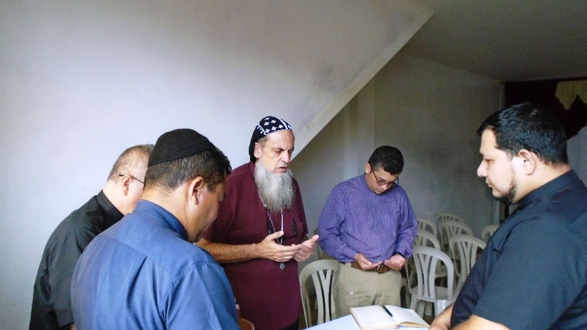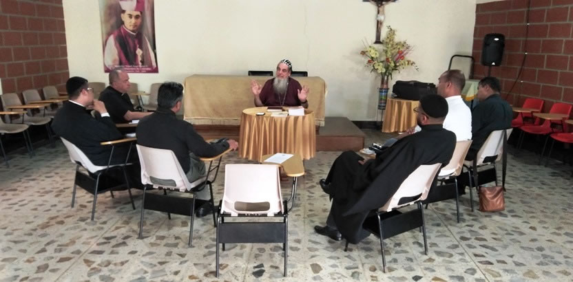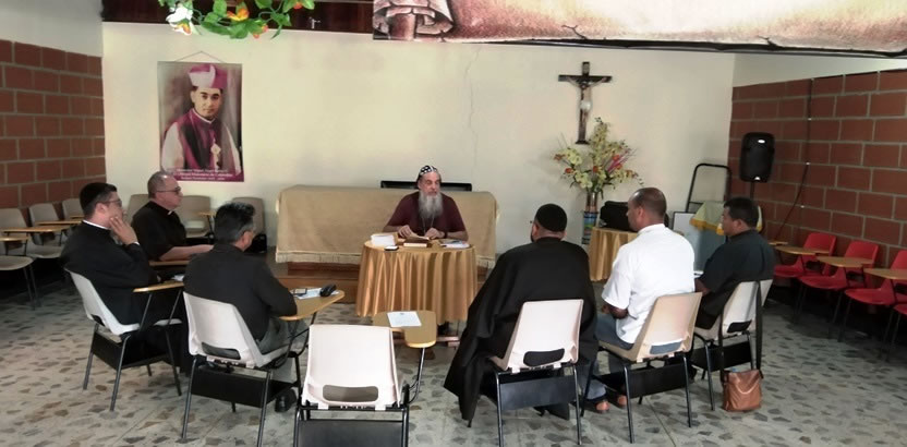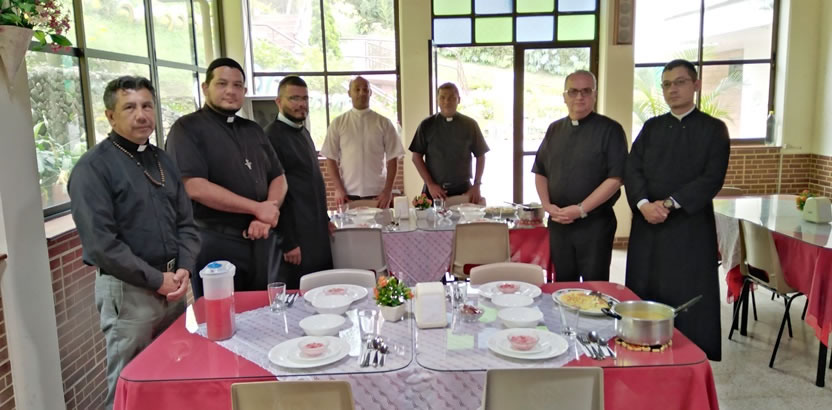 Después de la llegada y de almorzar, el arzobispo tuvo la primera reunión con el presbiterio de la vicaría. Se encontraban presentes seis de los padres, llegados de diferentes lugares de Colombia. Uno de ellos, el Padre Jeinner de Barranquilla, por razones de salud, no pudo estar presente.