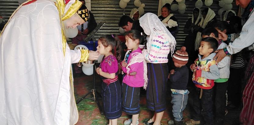 Con ocasión de la visita del arzobispo, se administraron los sacramentos de la iniciación cristiana a cinco hermanos, contrajeron matrimonio dos parejas e hicieron la comunión solemne cinco hermanos.
