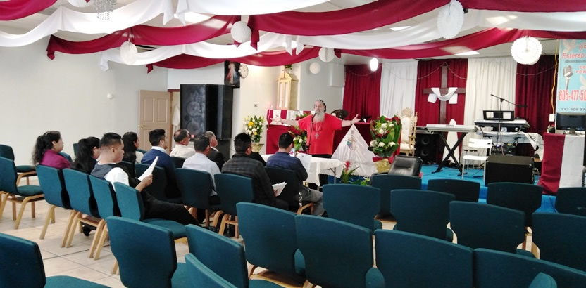 El domingo 19, por la mañana, el arzobispo inició su labor pastoral, visitando las instalaciones que ha logrado adquirir, para tener su sede, la comunidad Poder del Espíritu Santo, de Immokalee, Florida.