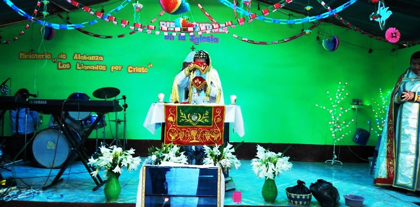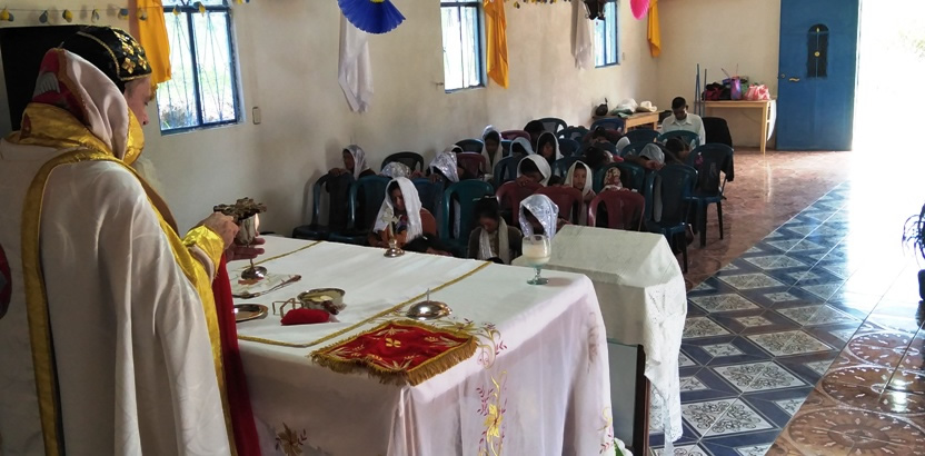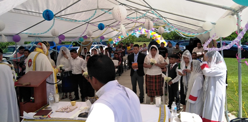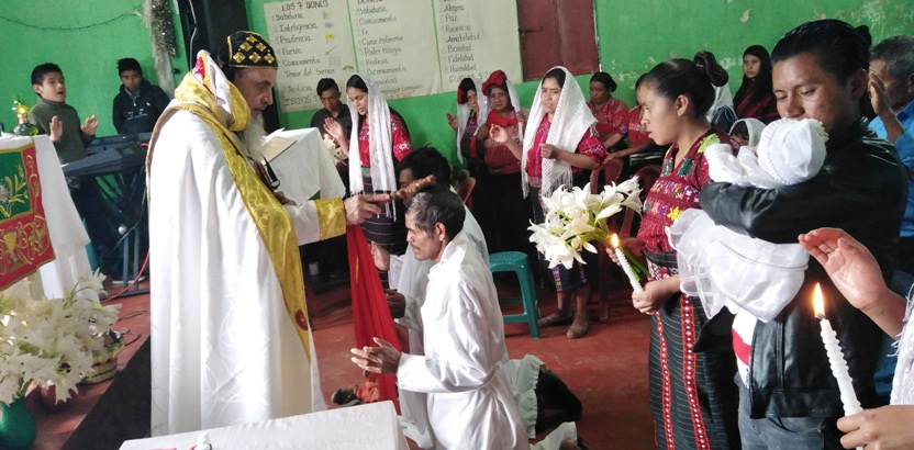 El sábado 25, por la mañana, Mor Santiago Eduardo hasta la comunidad central de Santiago Chimaltenango. Allí, además del pueblo de dios, estaba presente el Padre Pedro Martínez, encargado pastoral del área.