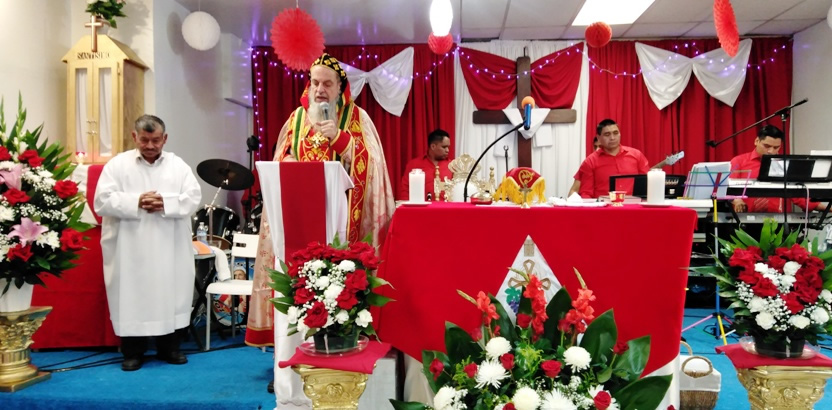 Durante la homilía, que fue pronunciada en inglés por Mor Jean y traducida al castellano por Mor Santiago Eduardo, el arzobispo hizo énfasis en la presencia continua del Señor en su iglesia, por medio de los sacramentos y de la predicación del Evangelio.