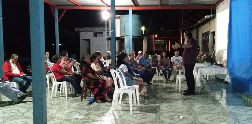 La ubicación estratégica de la comunidad, permitió que se pudiera hacer la celebración. El local en donde está la iglesia se ubica en un Centro Comercial y, en el frente del mismo, hay una área social que está desocupada y se pudo utilizar para hacer el compartir fraterno con los hermanos.