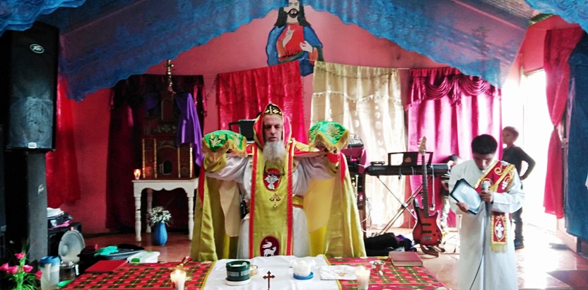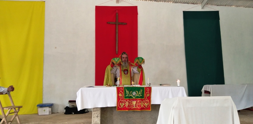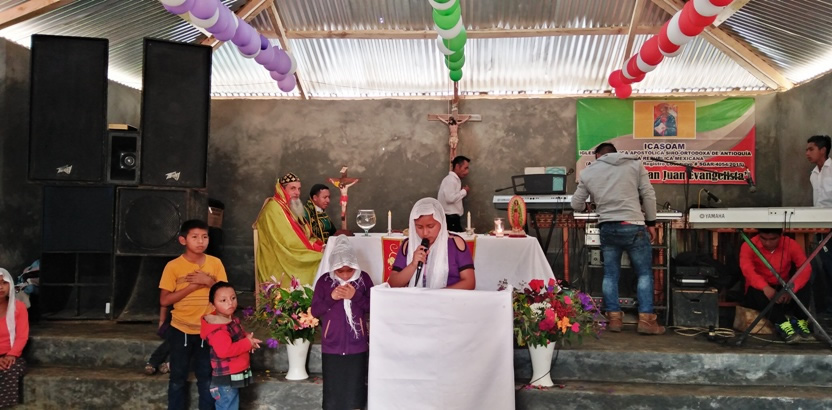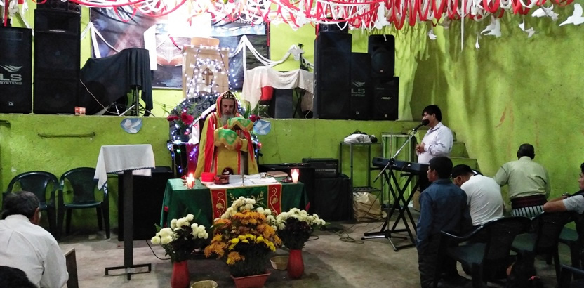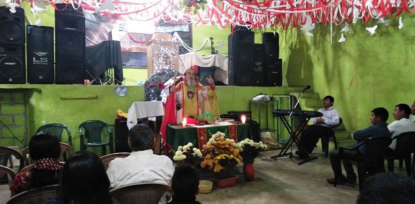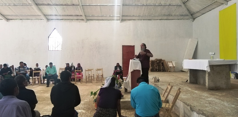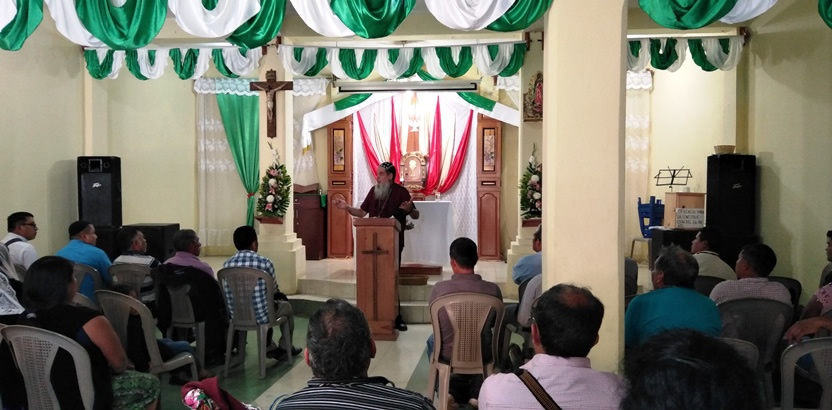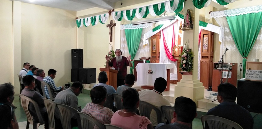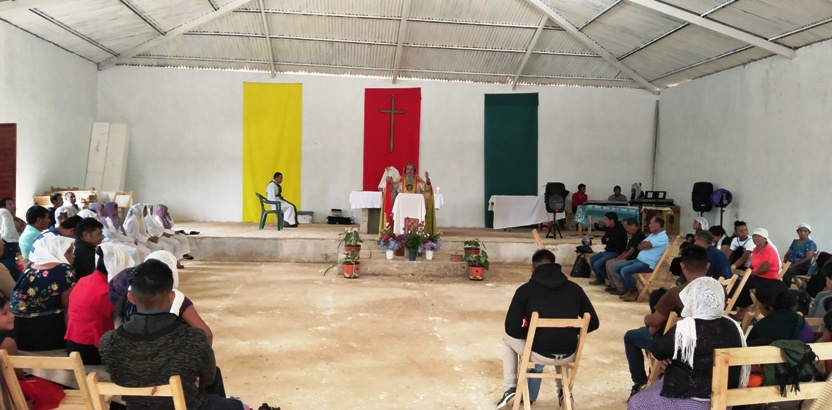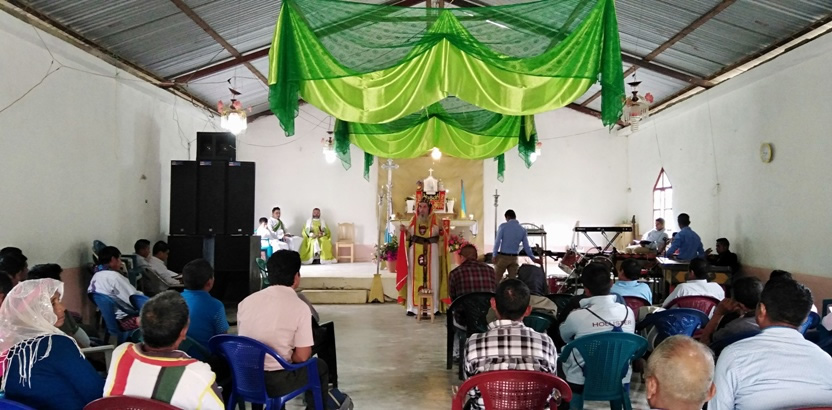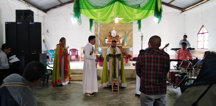 El domingo 21, por la mañana, el arzobispo, acompañado del padre José Hernández, párroco local, llegó hasta la sede parroquial de la parroquia Buen Pastor, Amparo Agua Tinta, Chiapas.