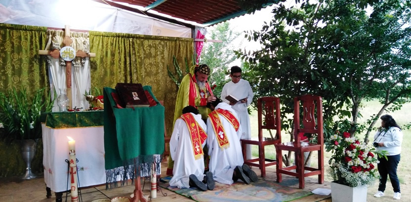 El viernes 23, por la tarde, el arzobispo llegó hasta la sede central de la Misión Santa María de Guadalupe, de Coyotepec, Oaxaca, México, para celebrar la ordenación como diáconos completos, de los sub-diáconos José Juan y Wilber Antonio.