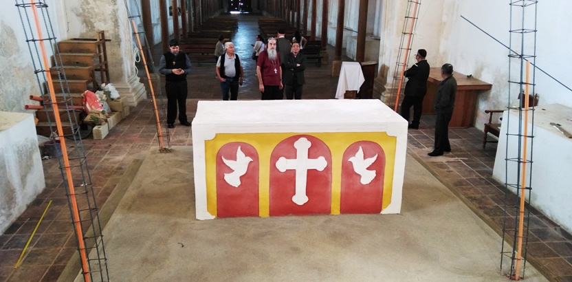 Debido a que la Asociación de la catedral y los representantes de la Iglesia, así como los presbíteros, manifestaron al arzobispo en su visita de marzo que no contaban con los recursos económicos para poder avanzar en la terminación del presbiterio de la iglesia colonial, porque tenían otras prioridades económicas, el arzobispo expresó su disponibilidad para que, aunque tuviera que vender lo que fuera, él contraibuiría para que el presbiterio de la iglesia colonial pudiera ser terminado y el templo fuera consagrado por Su Santidad el Patriarca.