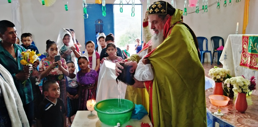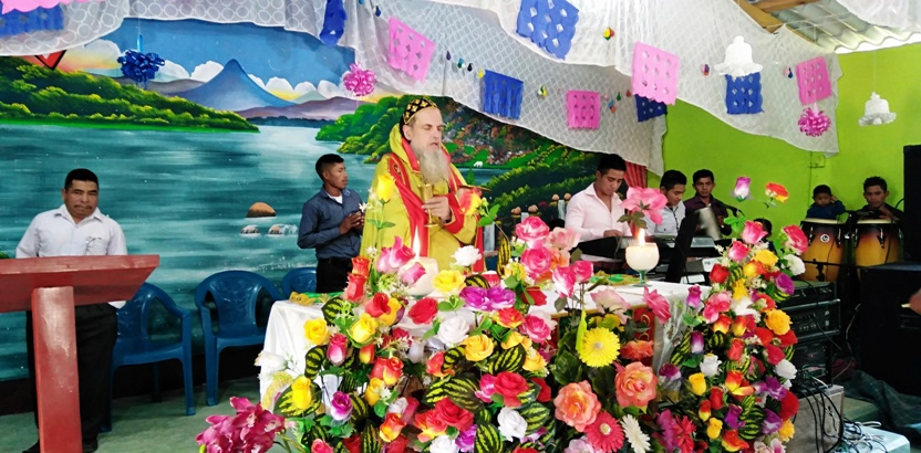 Después de la reunión de formación que se tuvo en la comunidad de Tojchiquel, el arzobispo, acompañado por el Padre José Luís, encargado del Centro Pastoral, concelebraron la Divina Liturgia.