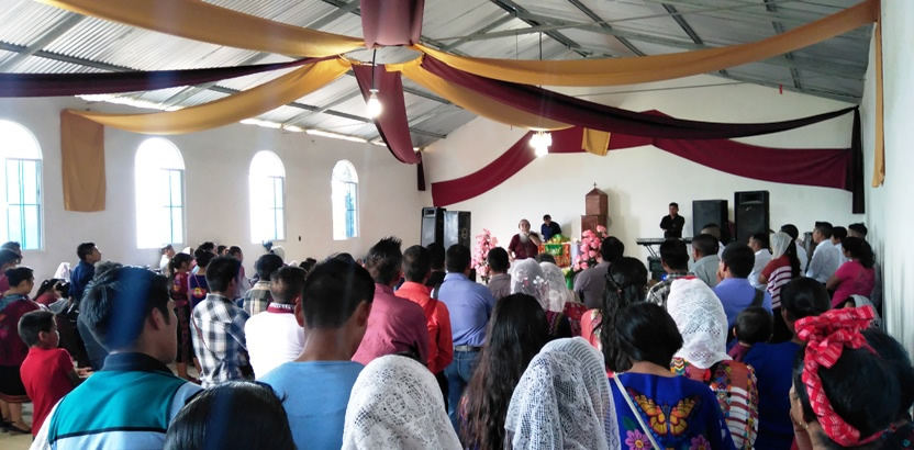 Los hermanos de la comunidad de Ixbán, han logrado construir un templo nuevo, en el mismo lugar en el que se encontraba el templo anterior, mucho más pequeño y de materiales más sencillos.